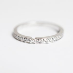 Nos alliances London sont des alliances possédant une courbure sur l’avant faite de diamants. Elles ont chacune un épaisseur d’anneau différente et un type de serti différent. Elles possèdent un style délicat et épuré mais qu’une grande brillance, tout en restant intemporelles. On les imagine comme des couronnes qui viennent se positionner sur la bague de fiançailles ou en dessous pour un effet allongeant du doigt, en fonction des préférences.