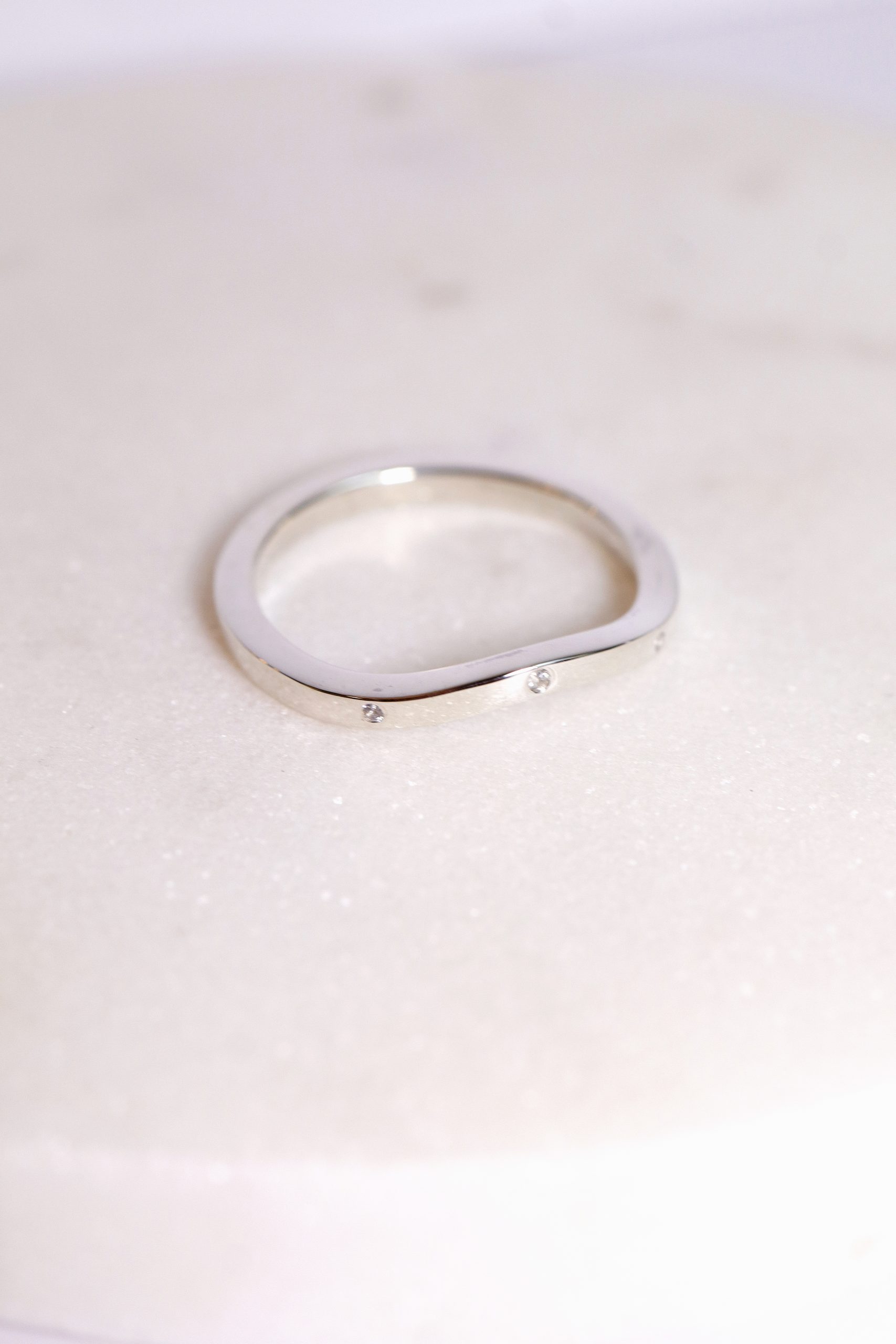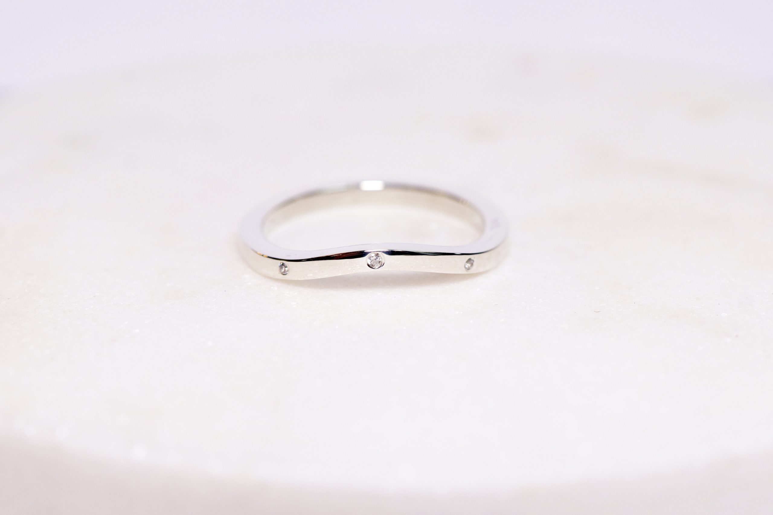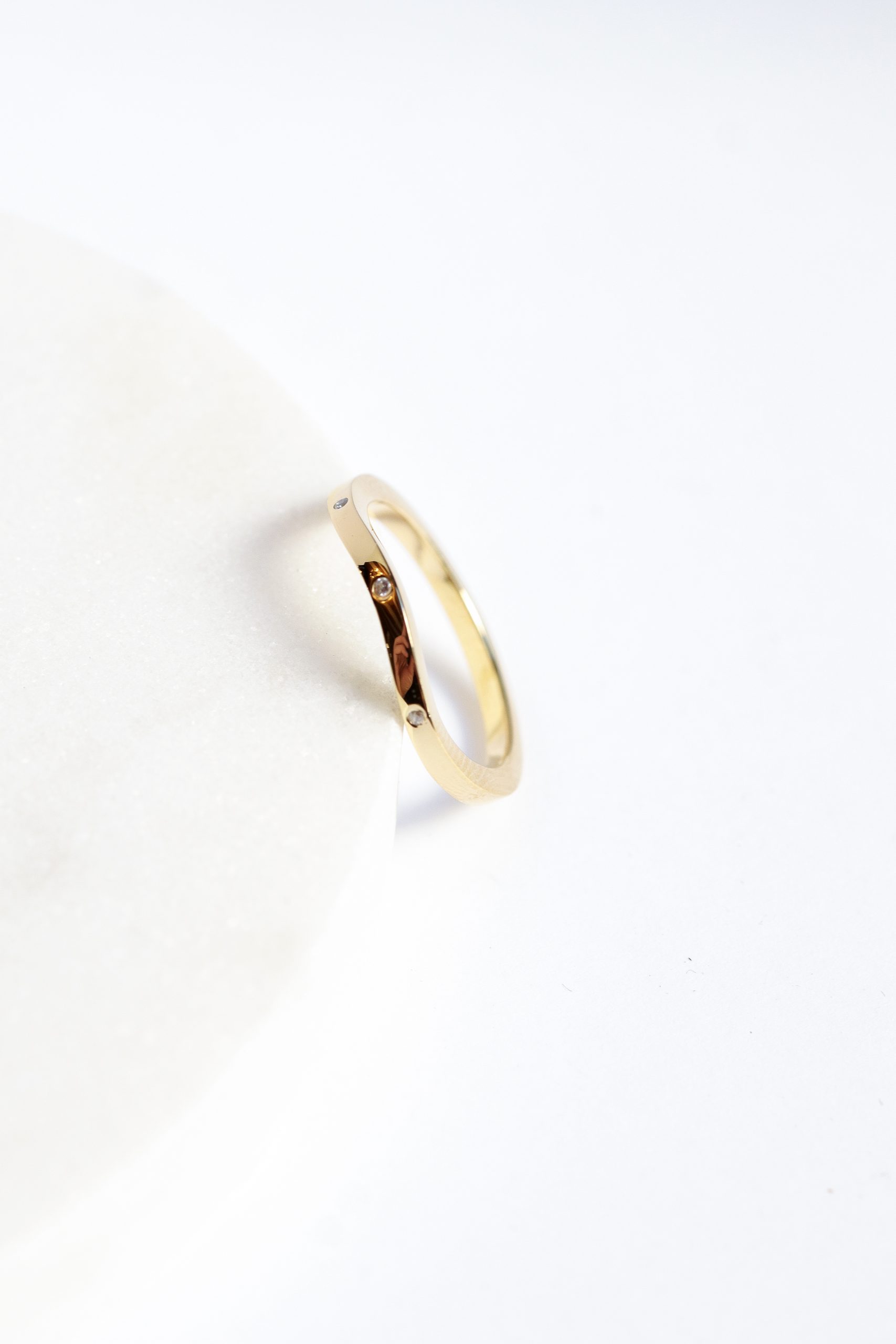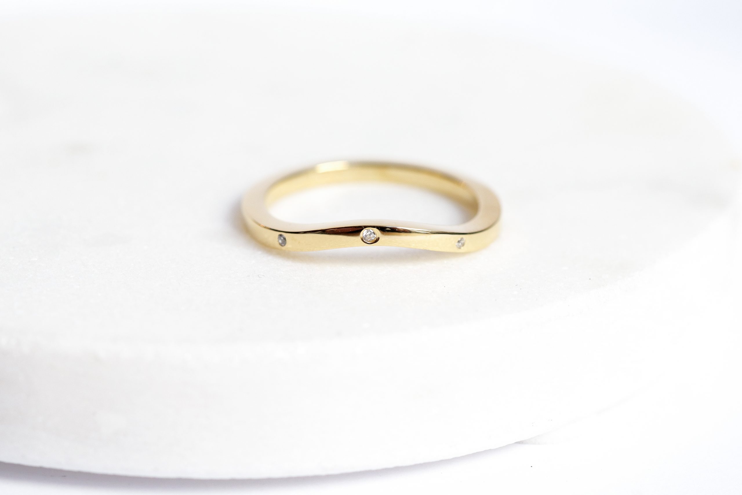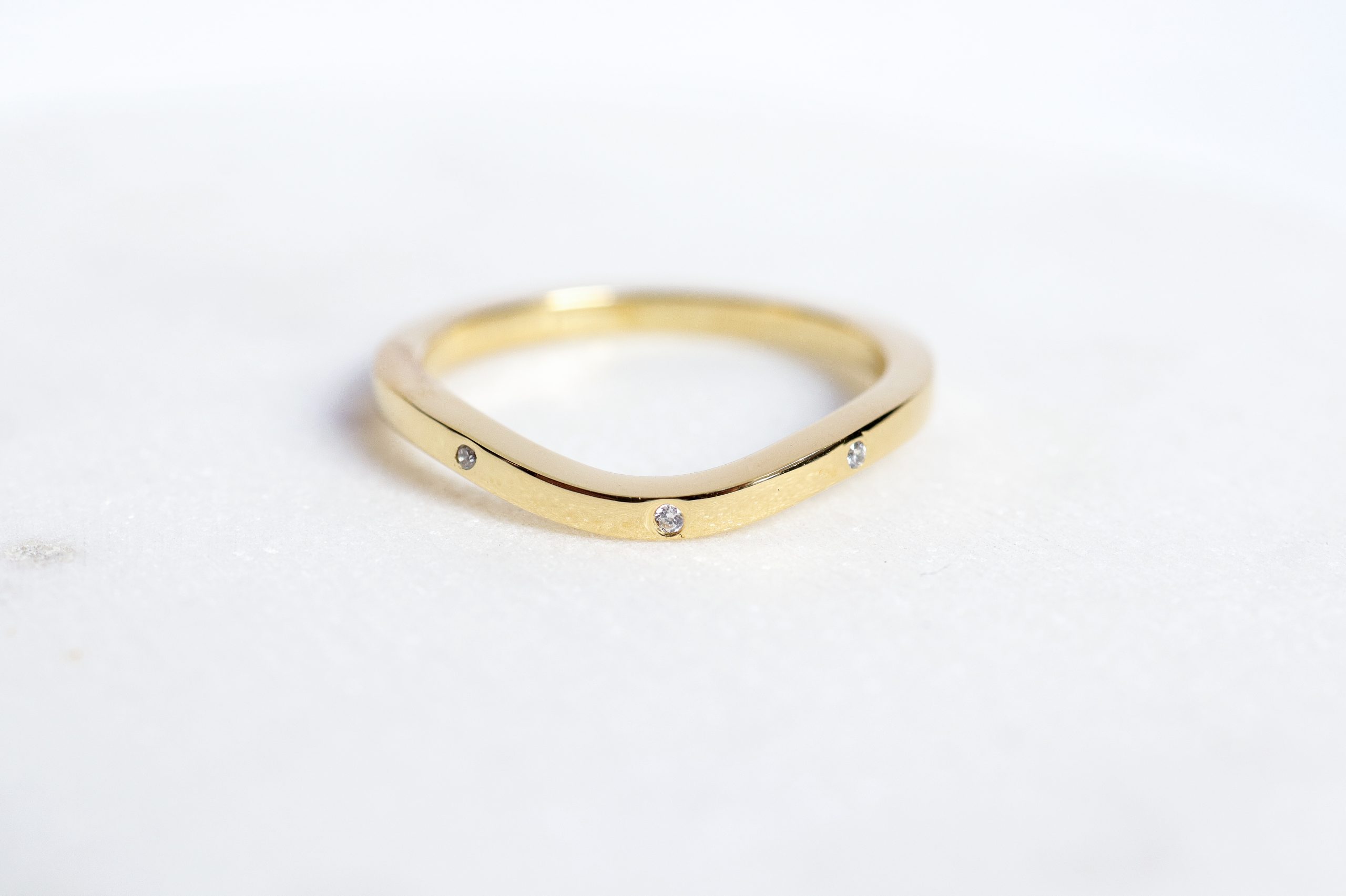 Alliance courbée en or 18 carats sertie de 3 diamants de 0,018 carats.