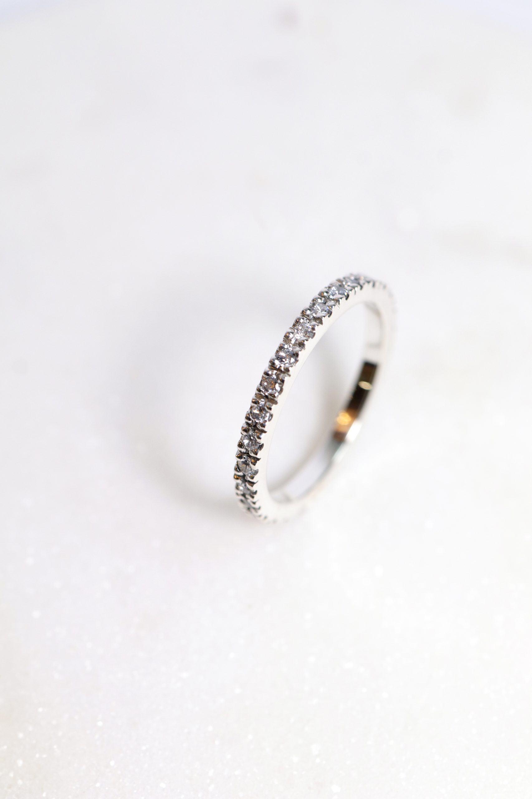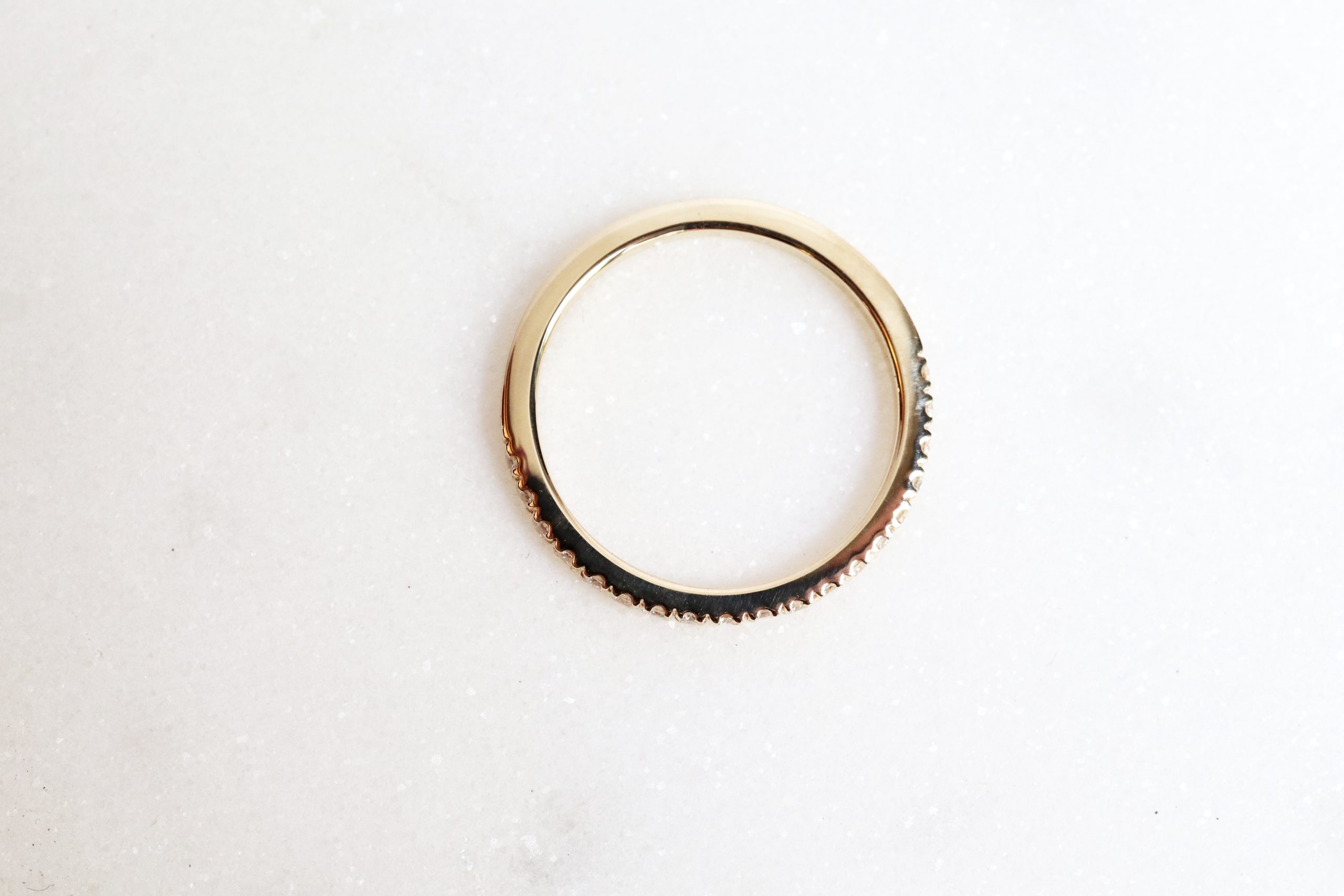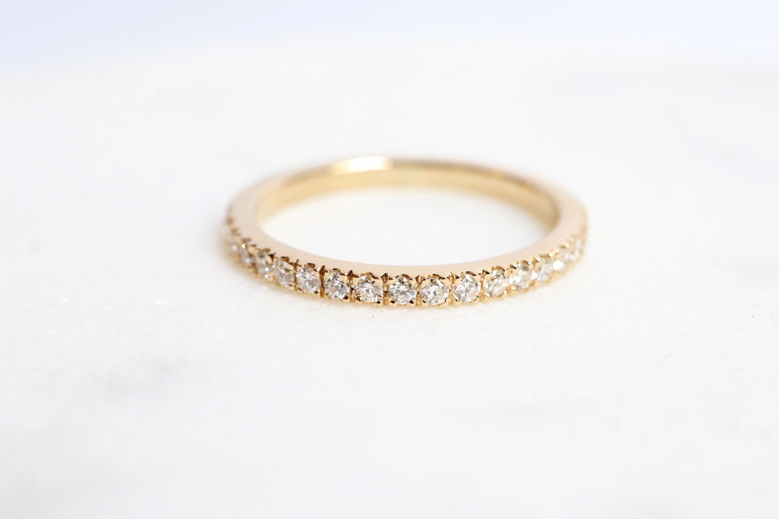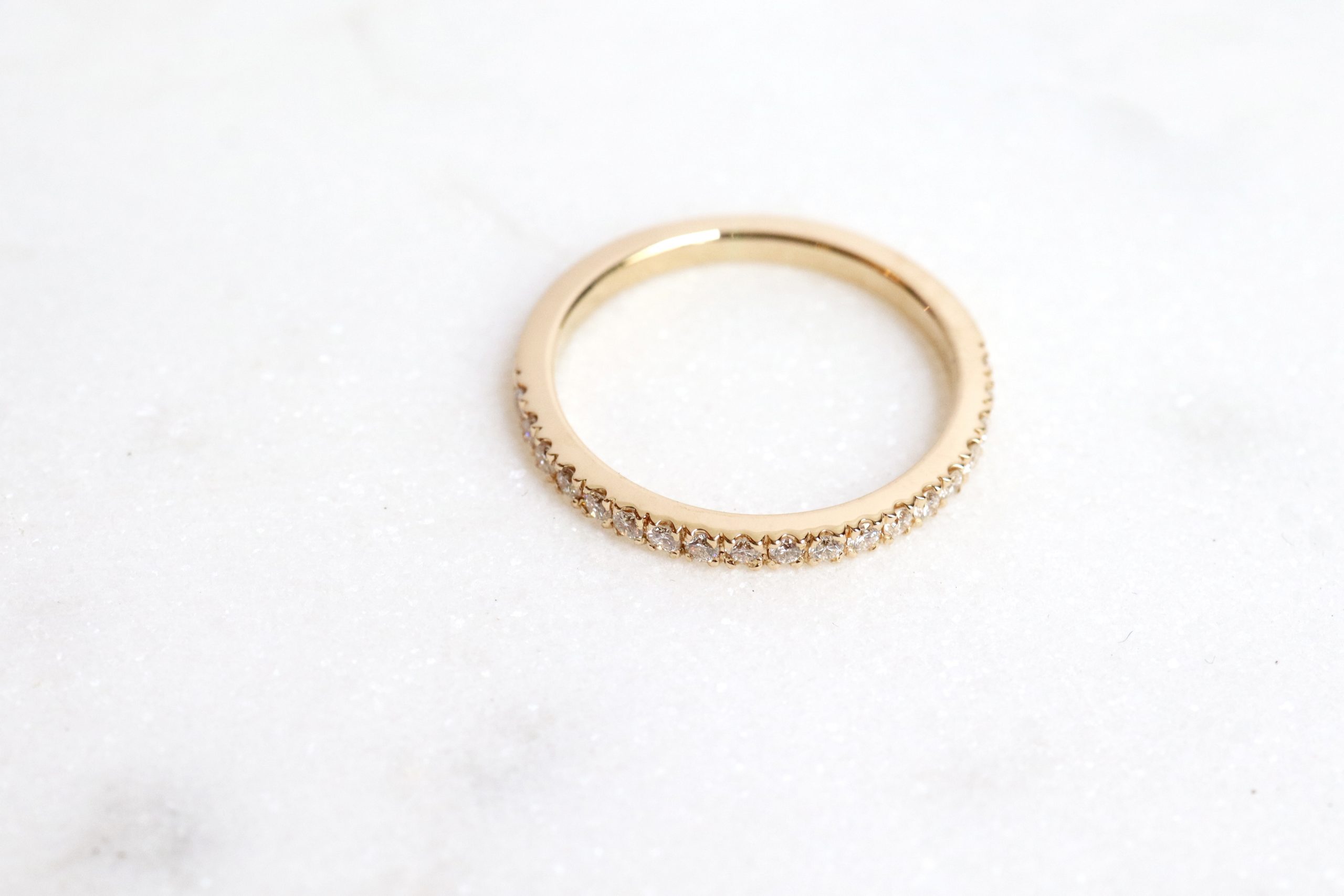 Alliance or 18 carats semi-empierrée de 18 diamants ou tour complet environ 30 diamants.