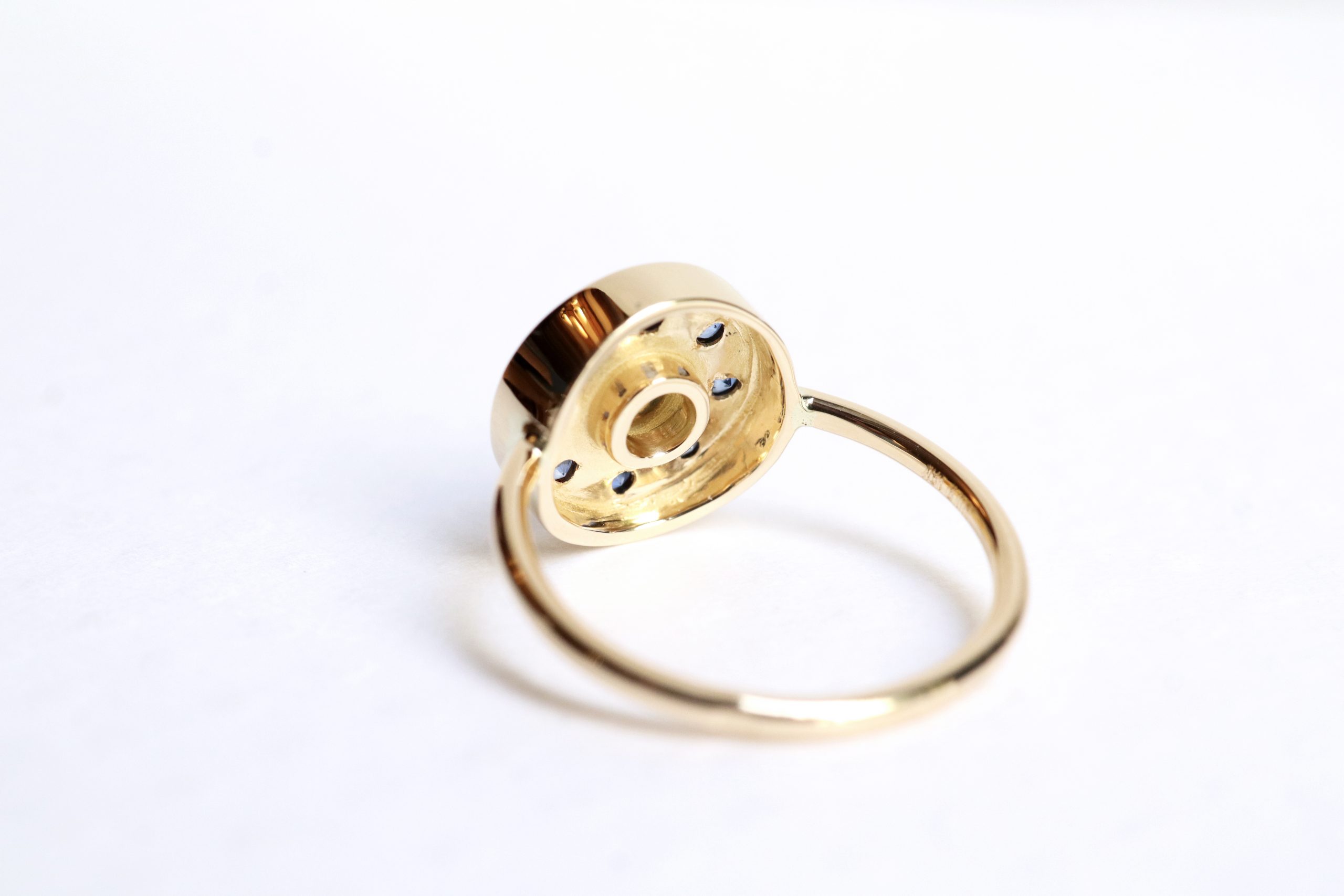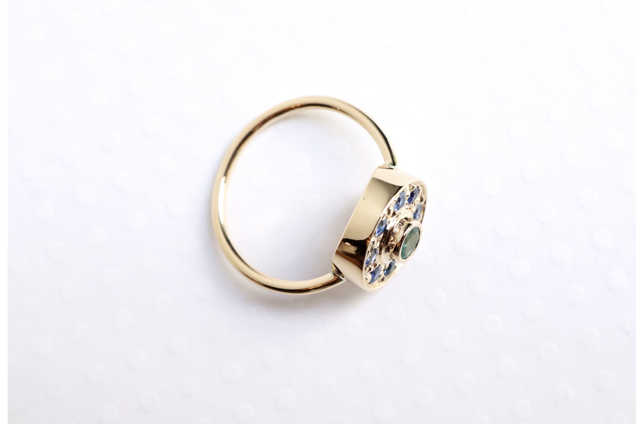 Émeraude 0,15ct et 8 saphirs bleu 0,35ct.