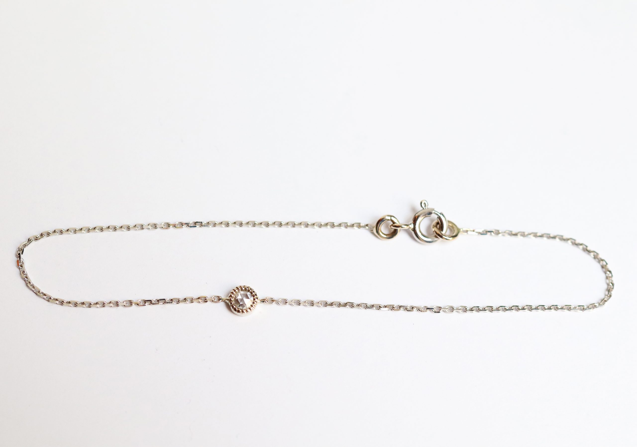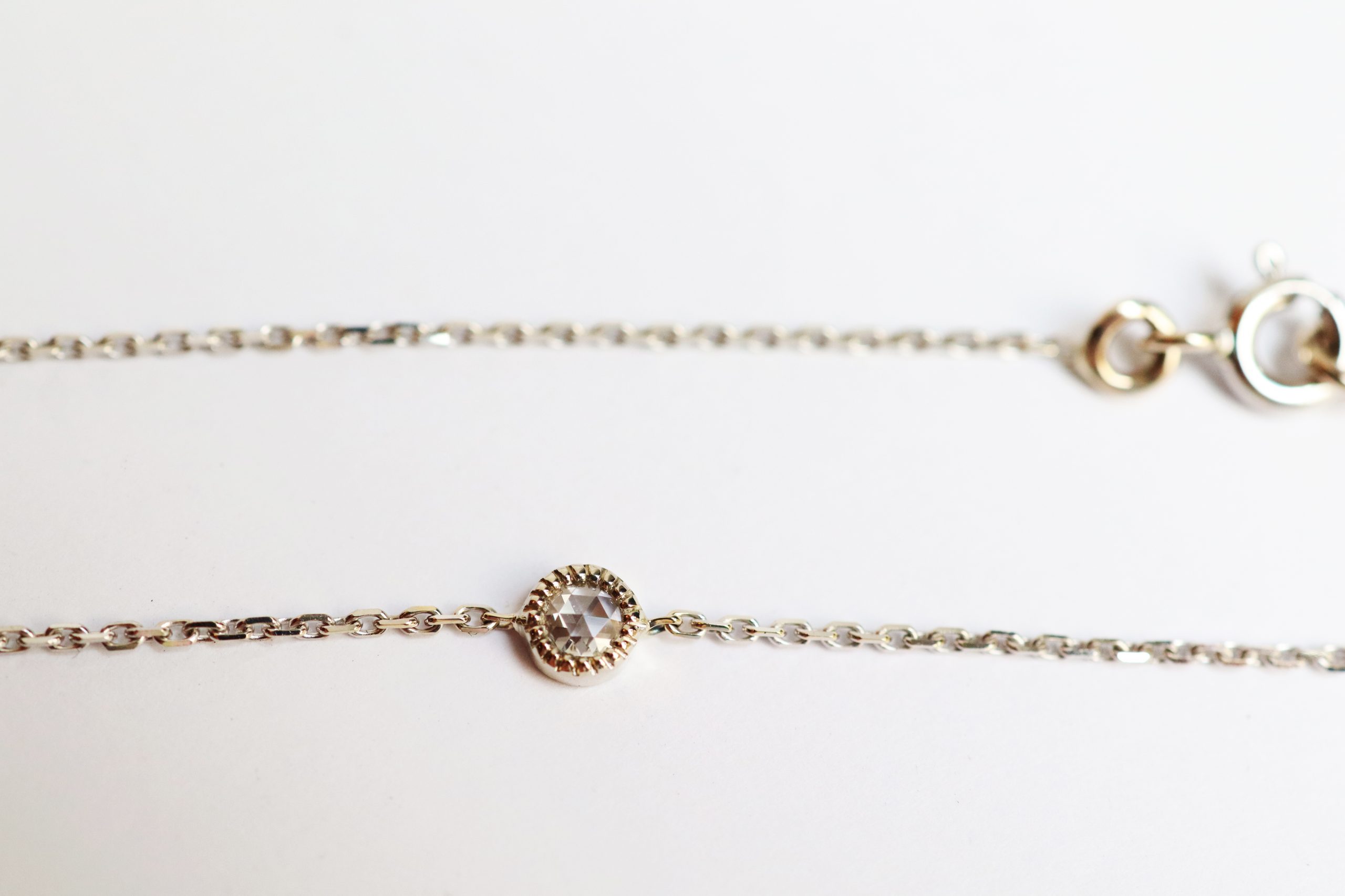 Bracelet chaîne en or 18 carats (750/1000) certifié RJC serti d’un diamant rosecut de 3mm.