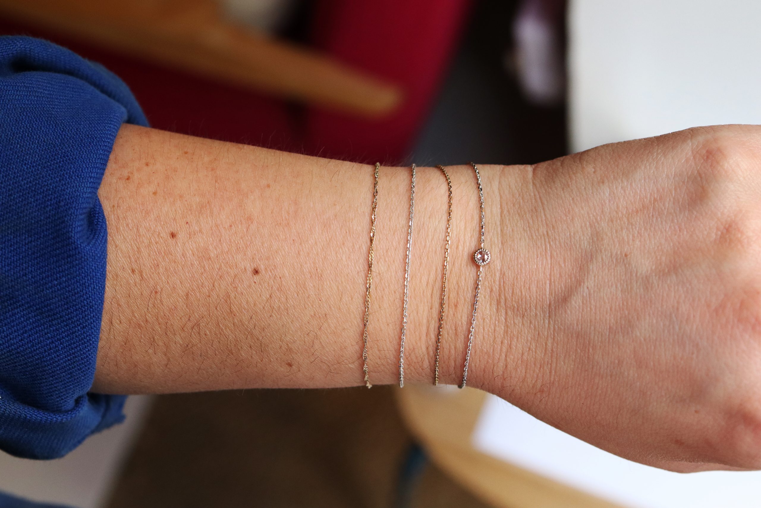 Bracelet en or 18 carats (750/1000) certifié RJC (Responsible Jewellery Council) serti d’un diamant blanc rosecut de 3mm et d’environ 0,10ct.