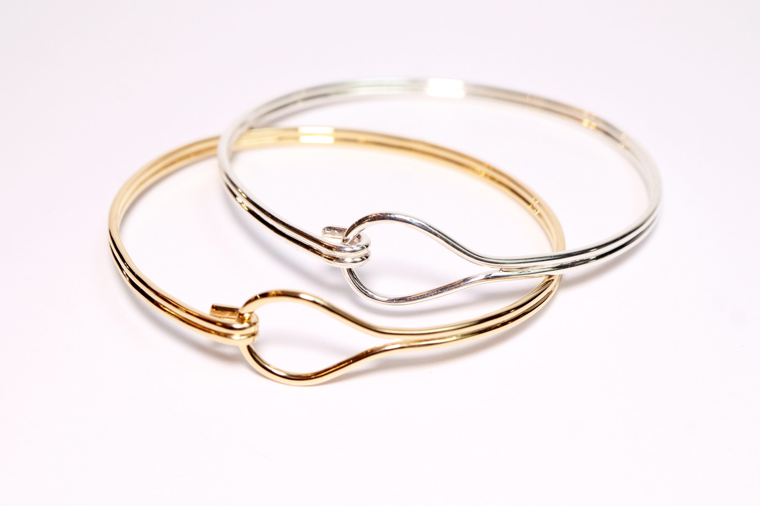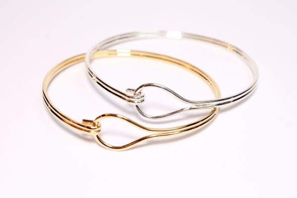 Jonc fil double avec un fermoir boucle en argent 925 ou vermeil avec un fermoir.