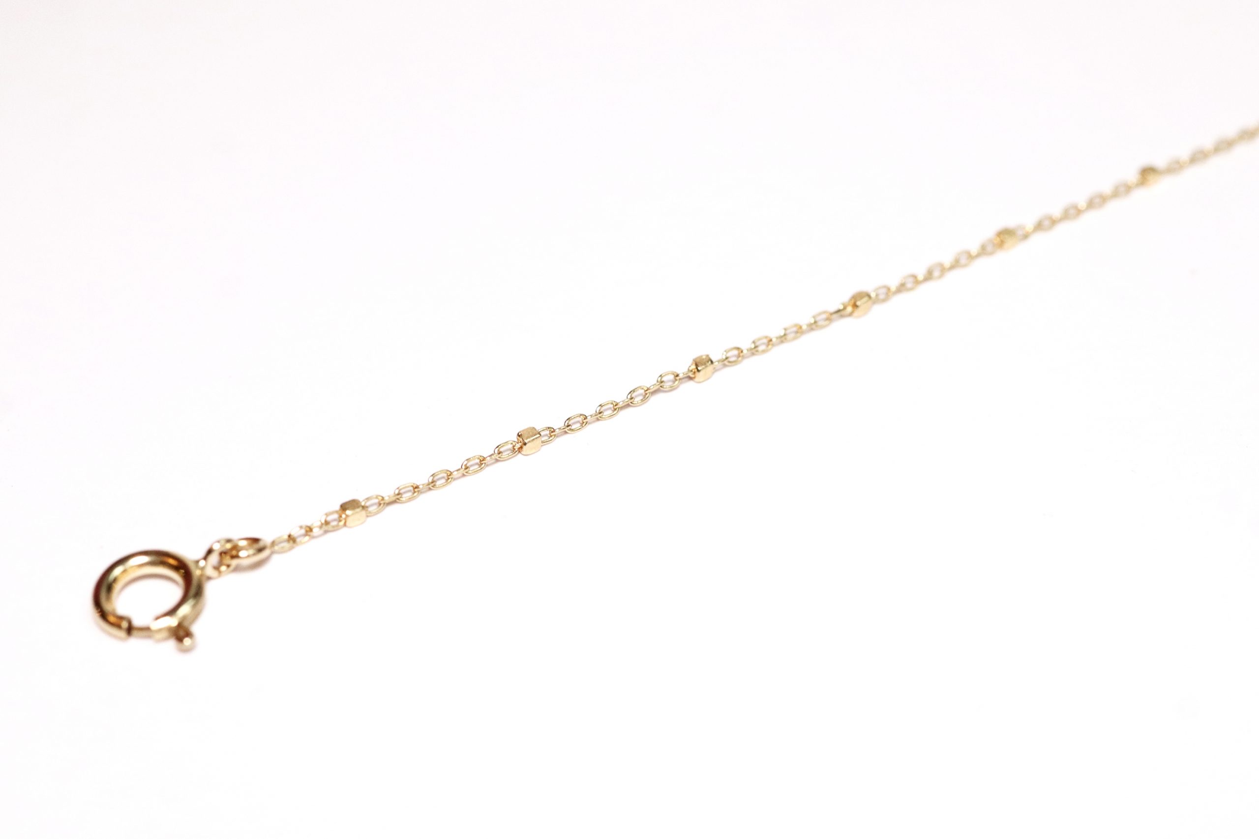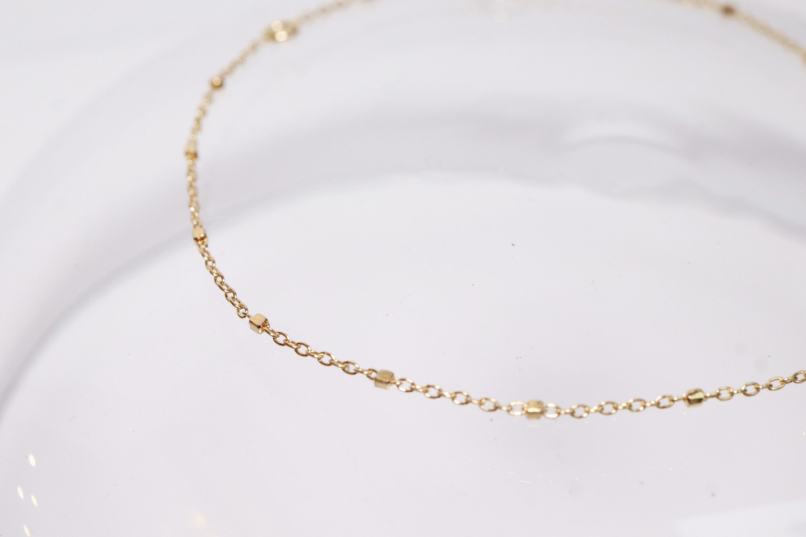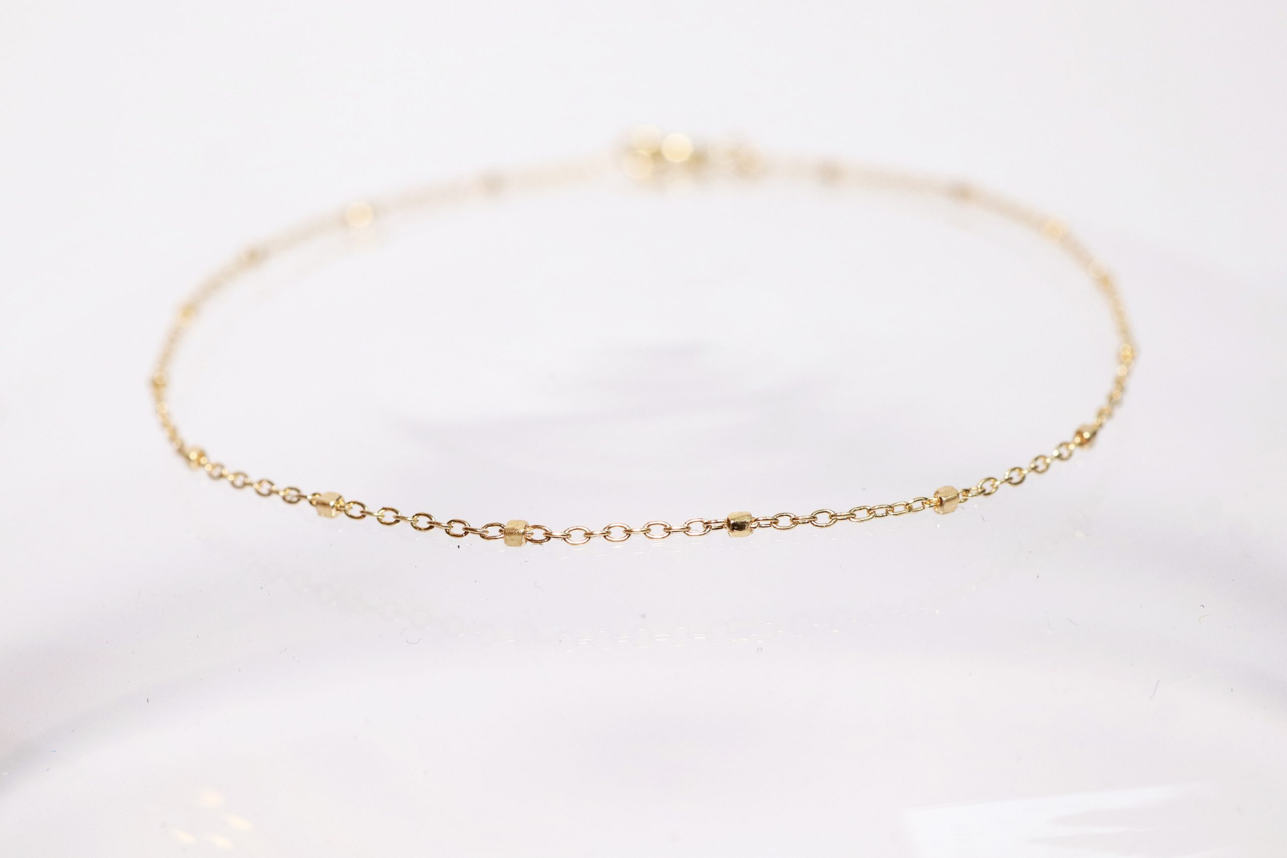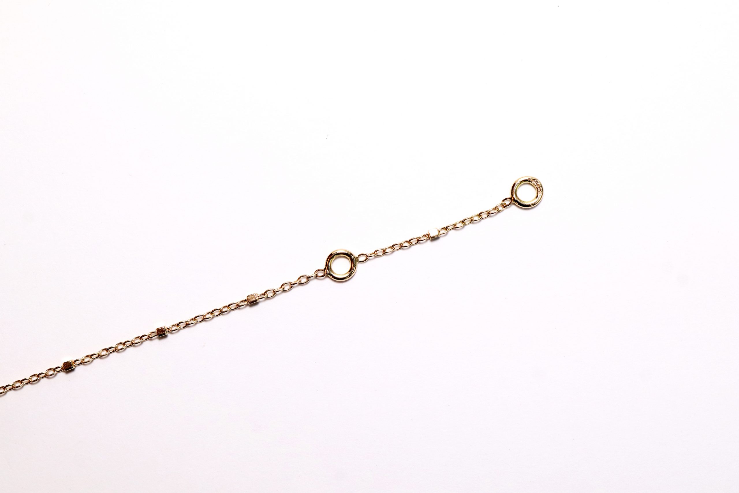 Composé d’une chaîne fine avec des cubes, ce bracelet possède 2 anneaux qui permettent d’ajuster sa taille à votre poignet.