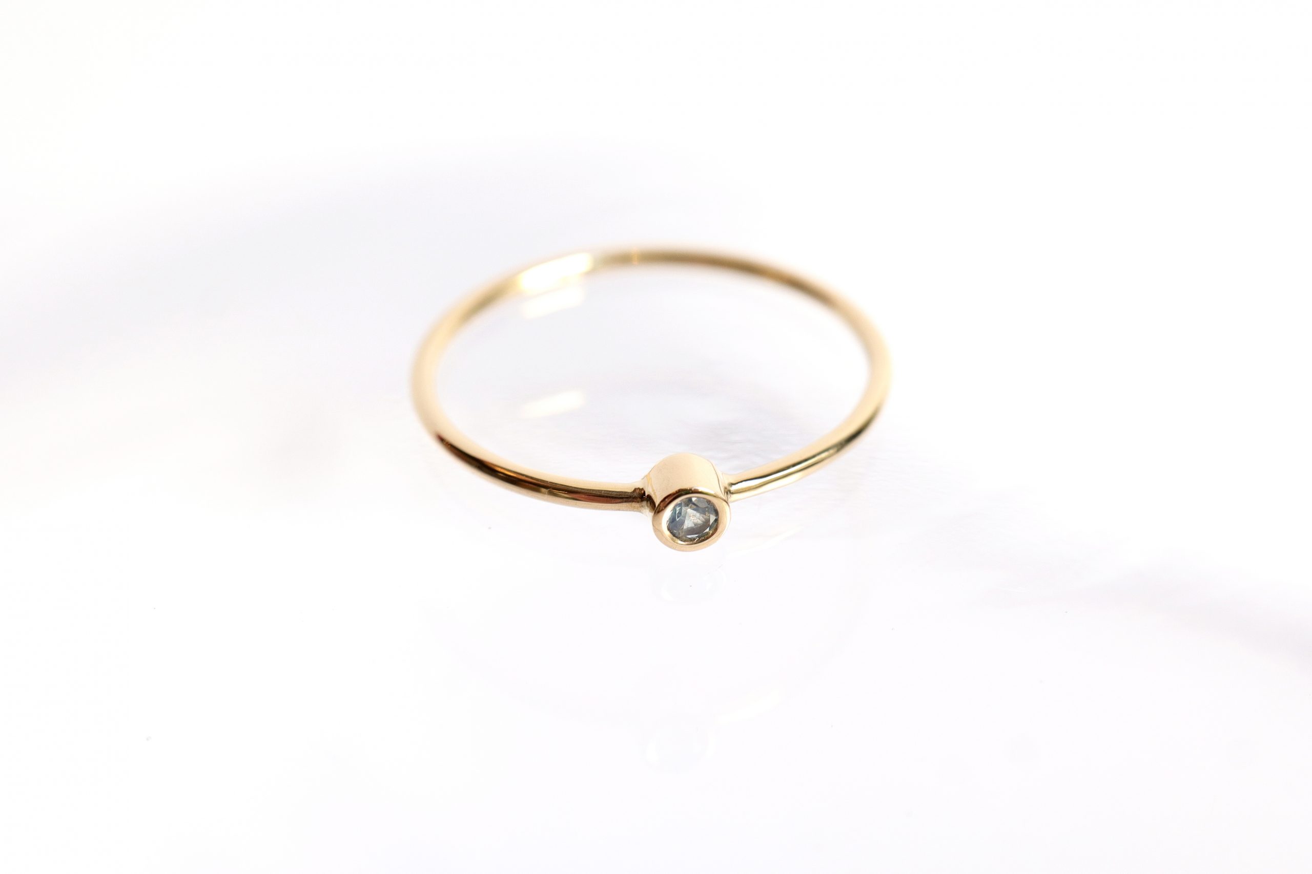Découvrez cette bague solitaire fine en or jaune 18 carats (750/1000), ornée d’un saphir naturel français bleu ciel extrait en Auvergne. Une pièce unique, au style minimaliste et intemporel, entièrement fabriquée à la main dans notre atelier lyonnais.