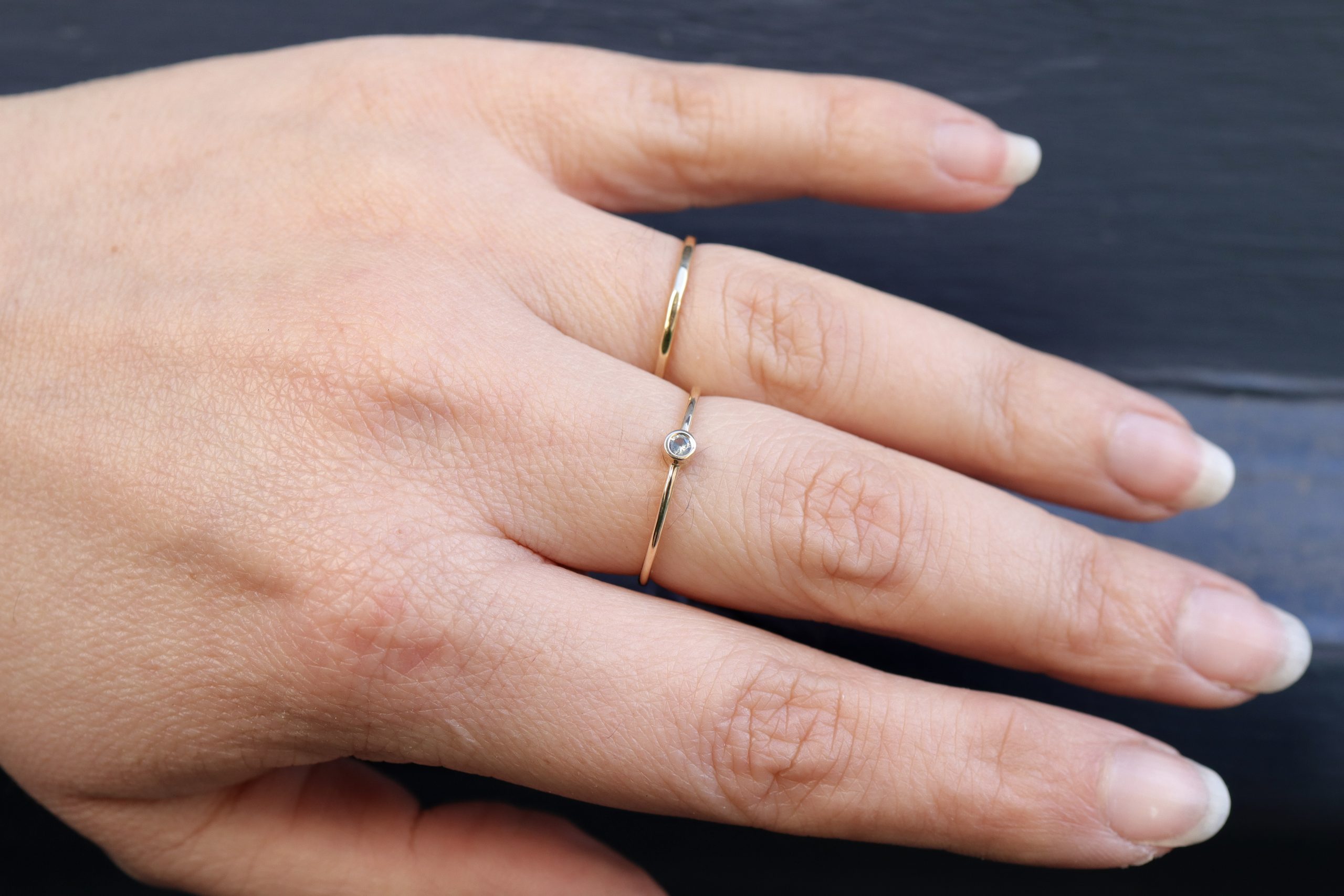 L’anneau en fil rond de 1 mm en or jaune 18 carats (750/1000) offre une finesse idéale pour être porté en superposition avec vos autres bagues. Sa discrétion en fait une bague du quotidien autant qu’un bijou de cérémonie. Notre or est certifié RJC (Responsible Jewellery Council) et nous privilégions l’or recyclé pour minimiser notre impact environnemental.