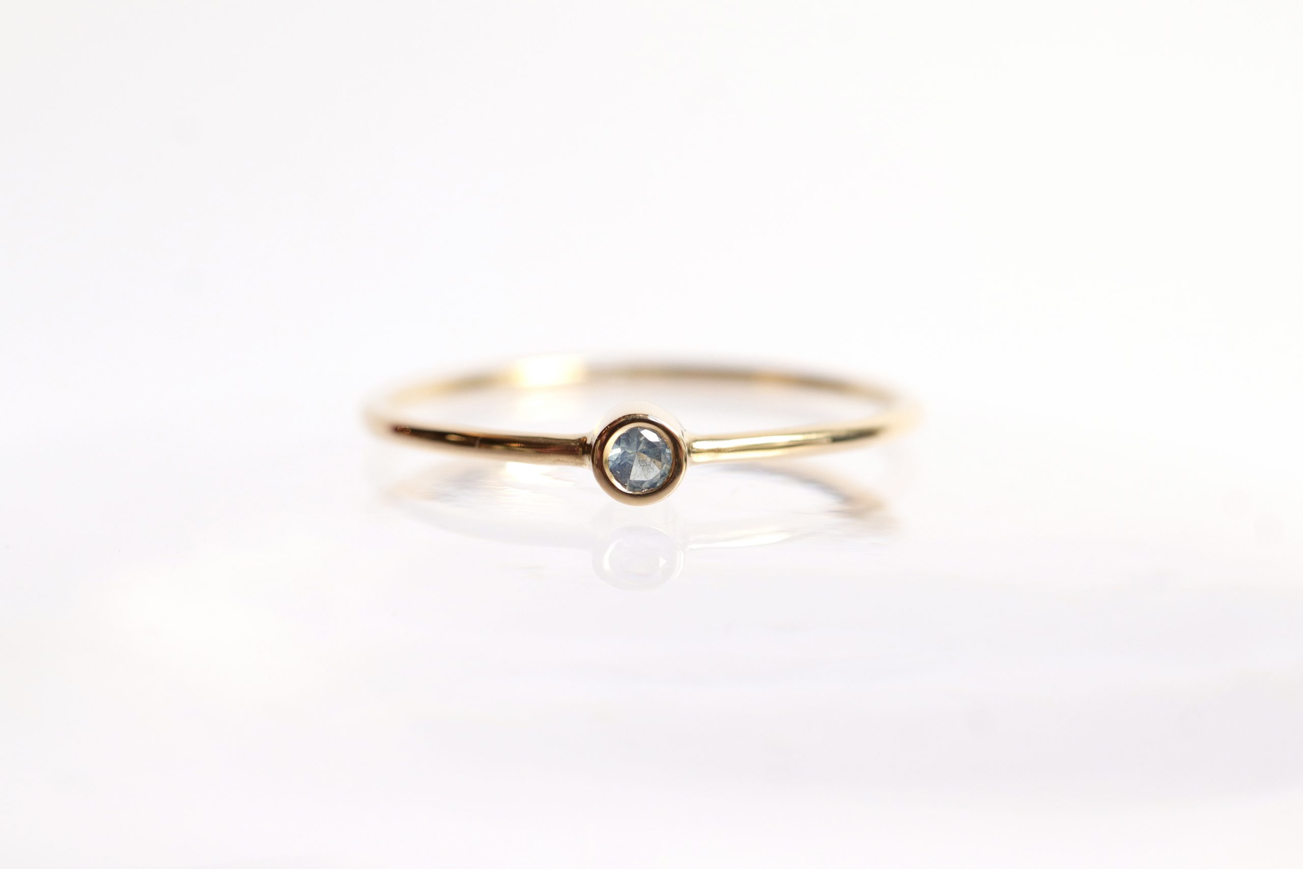 Bague fine en or jaune 18 carats (750/1000) certifié RJC, sertie d’un saphir d’Auvergne de 2mm.