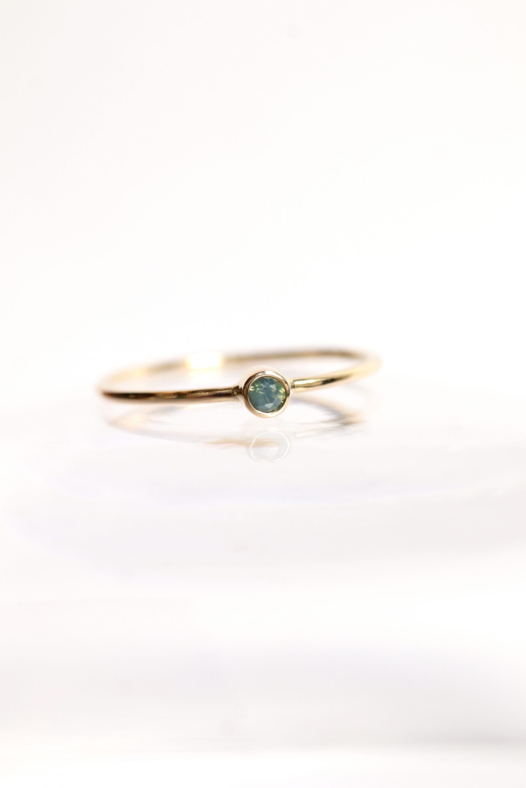 Découvrez cette bague solitaire fine en or jaune 18 carats (750/1000), ornée d’un saphir naturel français extrait en Auvergne. Une pièce unique, au style minimaliste et intemporel, entièrement fabriquée à la main dans notre atelier lyonnais.