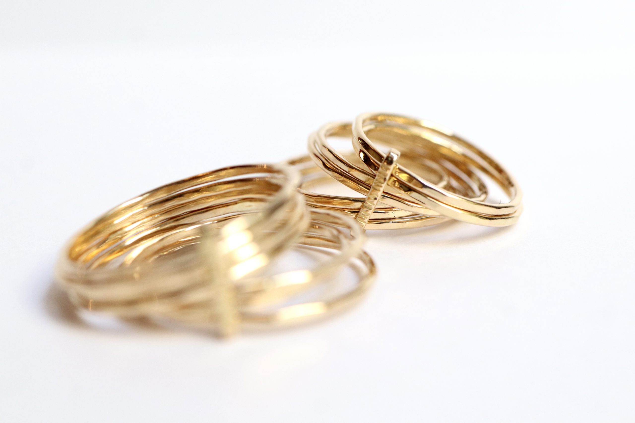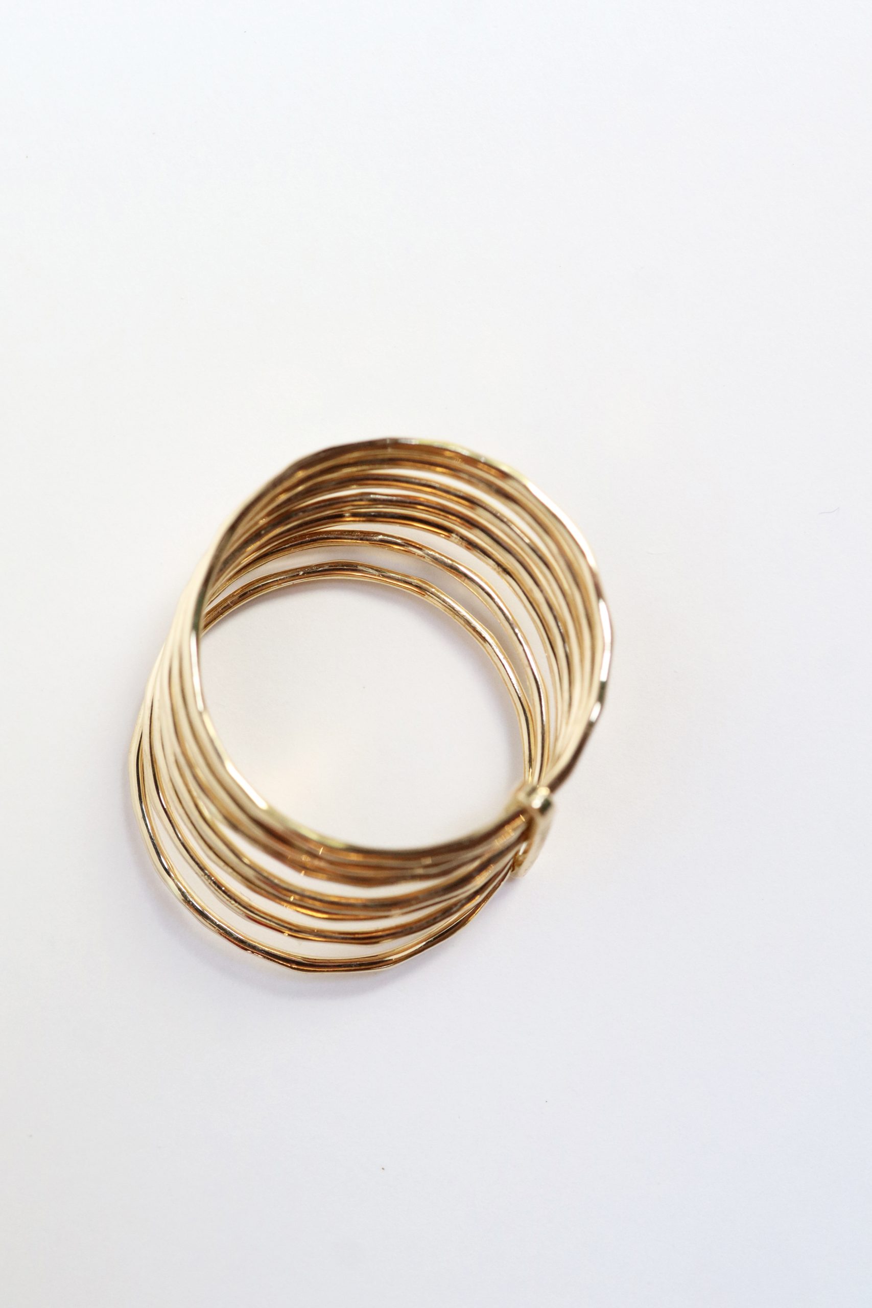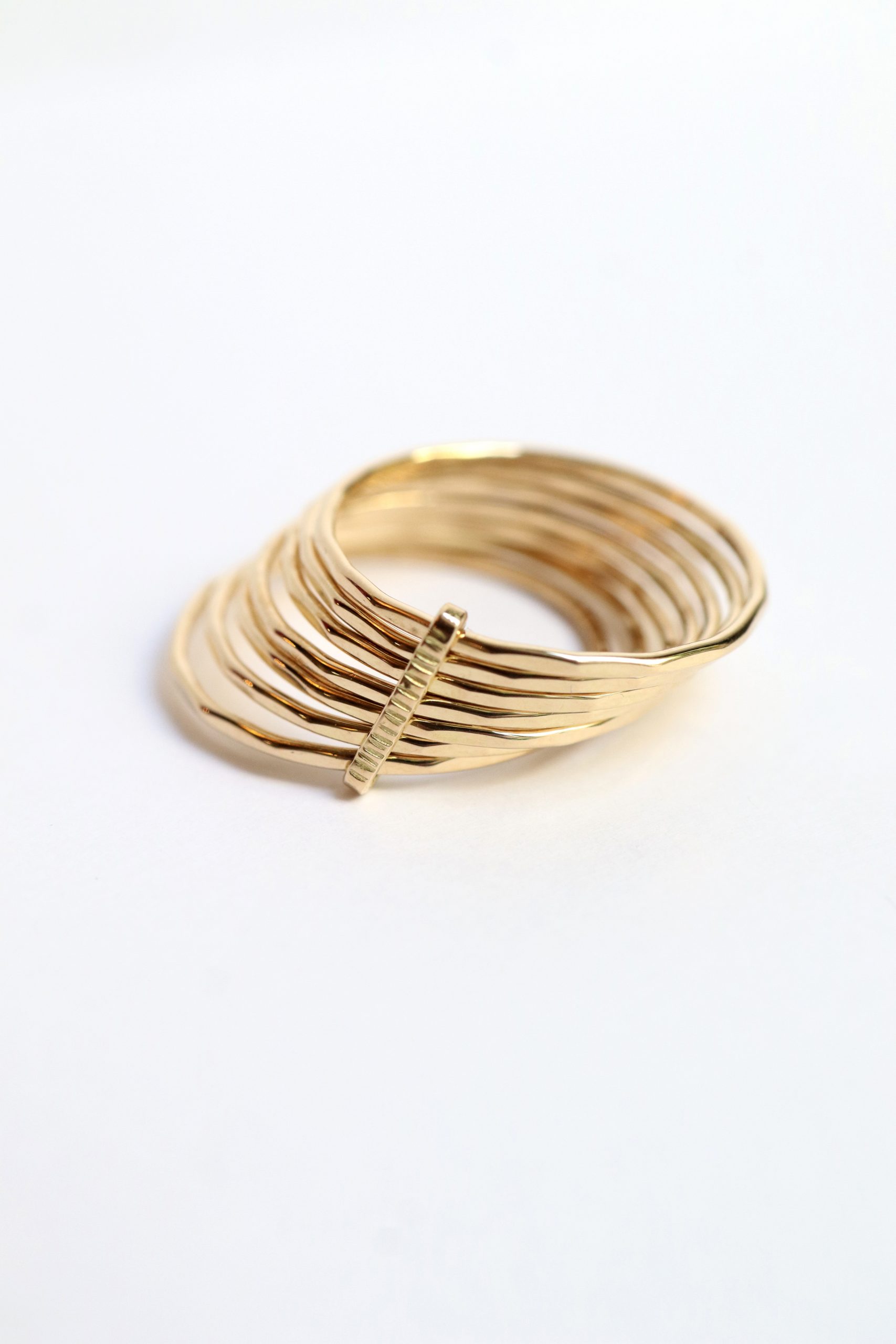 Semainier 7 anneaux martelés en or 18 carats (750/1000) reliés ensemble.